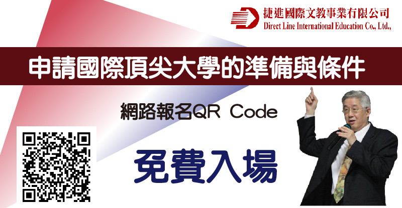 捷進將與各位家長分享正確的留學規劃,因為我們常常遇到許多優秀的學生,往往是因為開始準備的時間點慢了或錯誤的規劃,而與世界頂尖學府擦肩而過,如何為孩子的未來做最佳的出國引導與規劃,是家長極關切的主題,未來的教育是全球教育的趨勢,亞洲國家出國留學率日益增加,各國大學爭相推出利多,吸引各國學生前往就讀,教育國際化是勢在必行,我們將透過留學講座讓家長們能更加瞭解怎樣因應全球教育的趨勢。